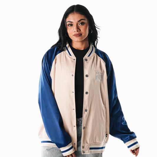 NYON x Knicks Give and Go Cream Varsity Jacket