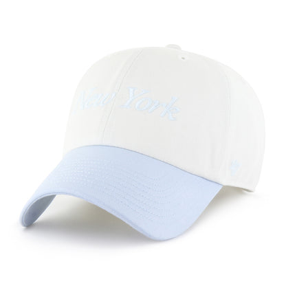 The ’47 Brand Knicks Light Blue Foundation Script Two-Tone Clean Up is a stylish and versatile cap for New York Knicks fans. Featuring a subtle "New York" script embroidery on the front, a soft light blue brim, and an unstructured, relaxed fit, this hat offers effortless comfort and a clean aesthetic. With its adjustable strap and timeless two-tone design, it's the perfect accessory for any casual or game-day look.