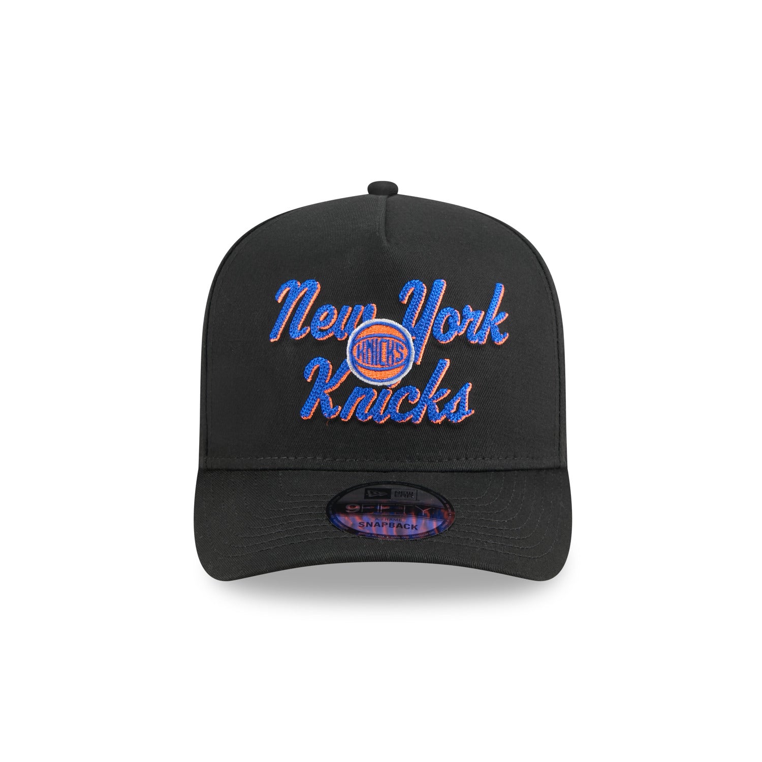 The New Era Knicks Chainstitch 9FIFTY A-Frame Snapback in Black delivers sleek, bold style with precision chain-stitched Knicks lettering on the front. Featuring a structured high crown and adjustable snapback closure, this cap offers a comfortable fit and modern look. Its versatile black color makes it a must-have for any Knicks fan’s wardrobe, perfect for game days or casual outings.