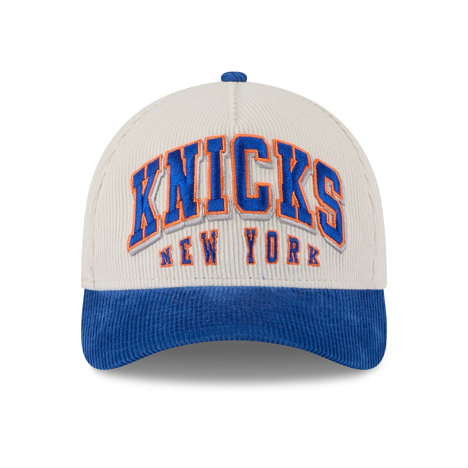 The New Era Knicks 2-Tone Sided 9FORTY M-Crown A-Frame Snapback in Chrome/Royal delivers bold style with a structured fit. Featuring an embroidered Knicks logo on the front and side detailing for added flair, this cap blends team pride with a clean, modern look. The chrome crown, royal brim, and adjustable snapback closure make it a standout accessory for any Knicks fan.