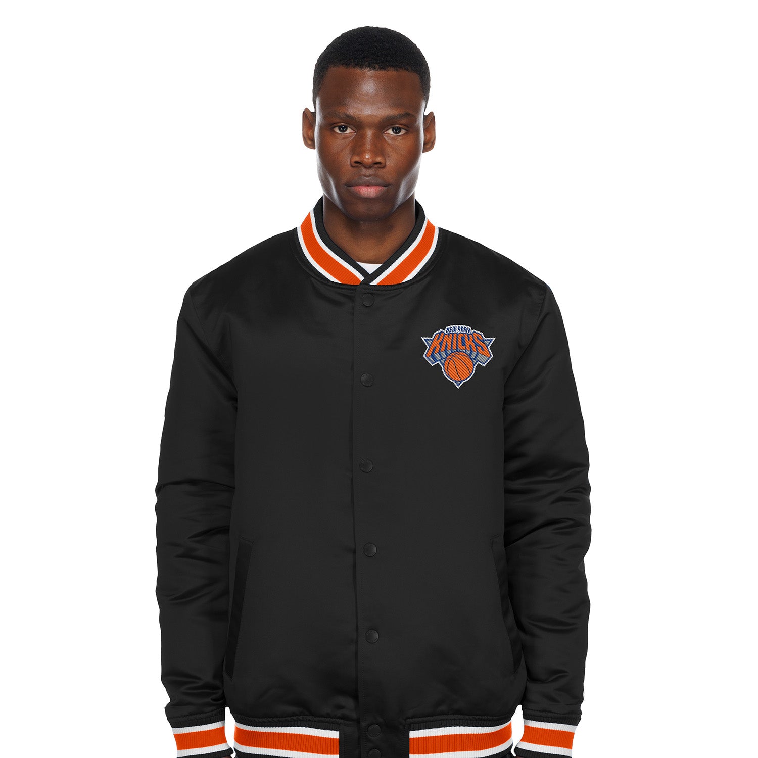 New Era Knicks Sport Classic Snap Front Black Satin Jacket