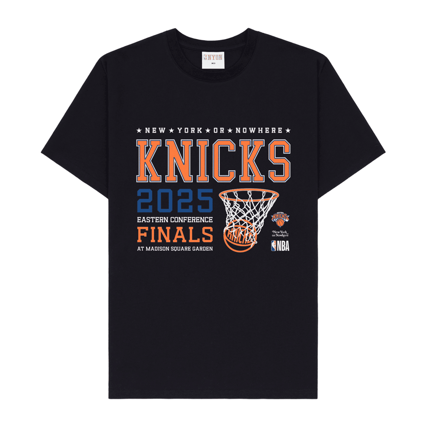 Show your city pride with the NYON Knicks Eastern Conference Finals 2025 Tee. Featuring bold Knicks graphics and a nod to Madison Square Garden, this shirt marks New York’s epic playoff run in signature NYON style. A must-have for fans riding the wave to the Finals.