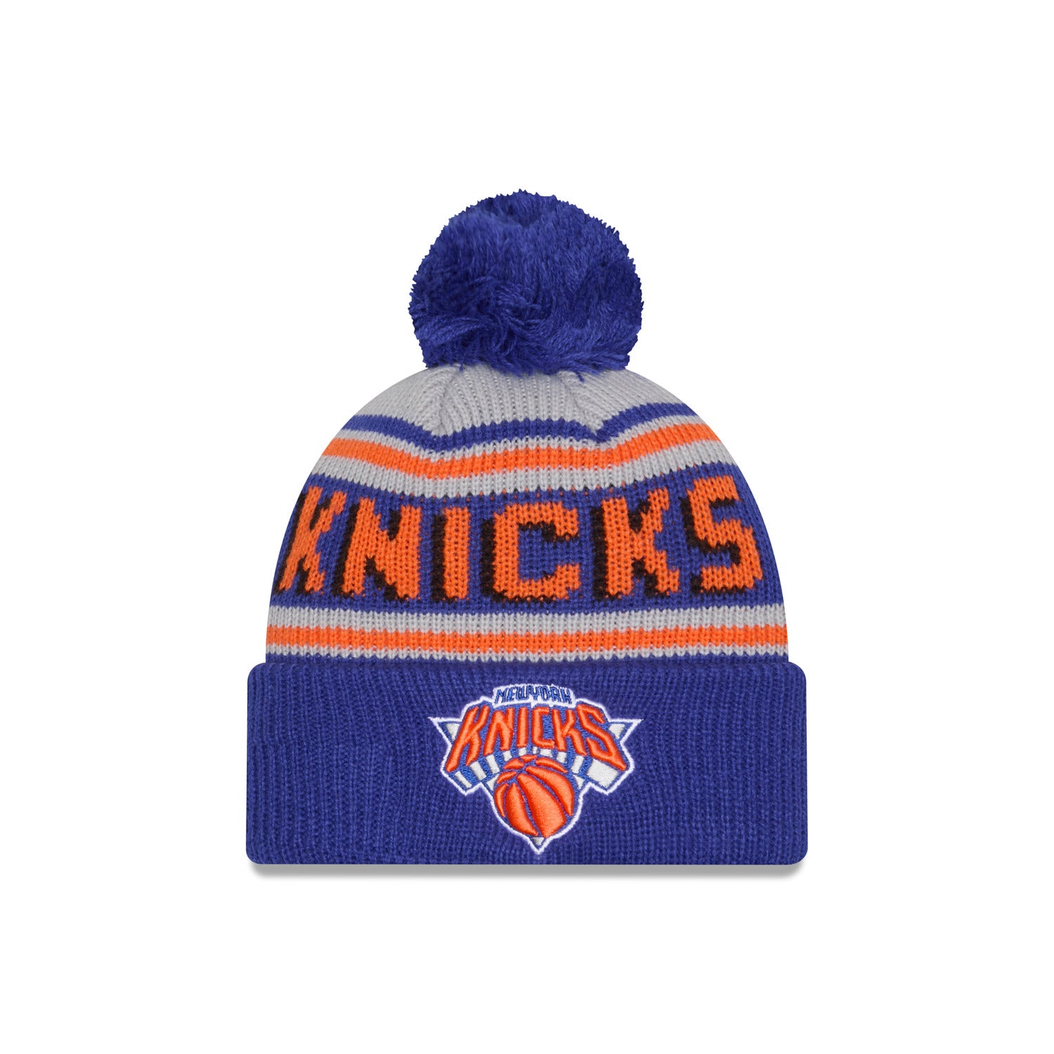 The Youth New Era Knicks Wordmark Knit Pom Hat is a stylish and cozy accessory designed for young Knicks fans. Featuring the iconic "NEW YORK" wordmark, this hat showcases the team's colors and spirit. The knit design ensures warmth during colder months, while the pom-pom adds a playful touch. Officially licensed by the NBA, it's a perfect way for youth to show their team pride.