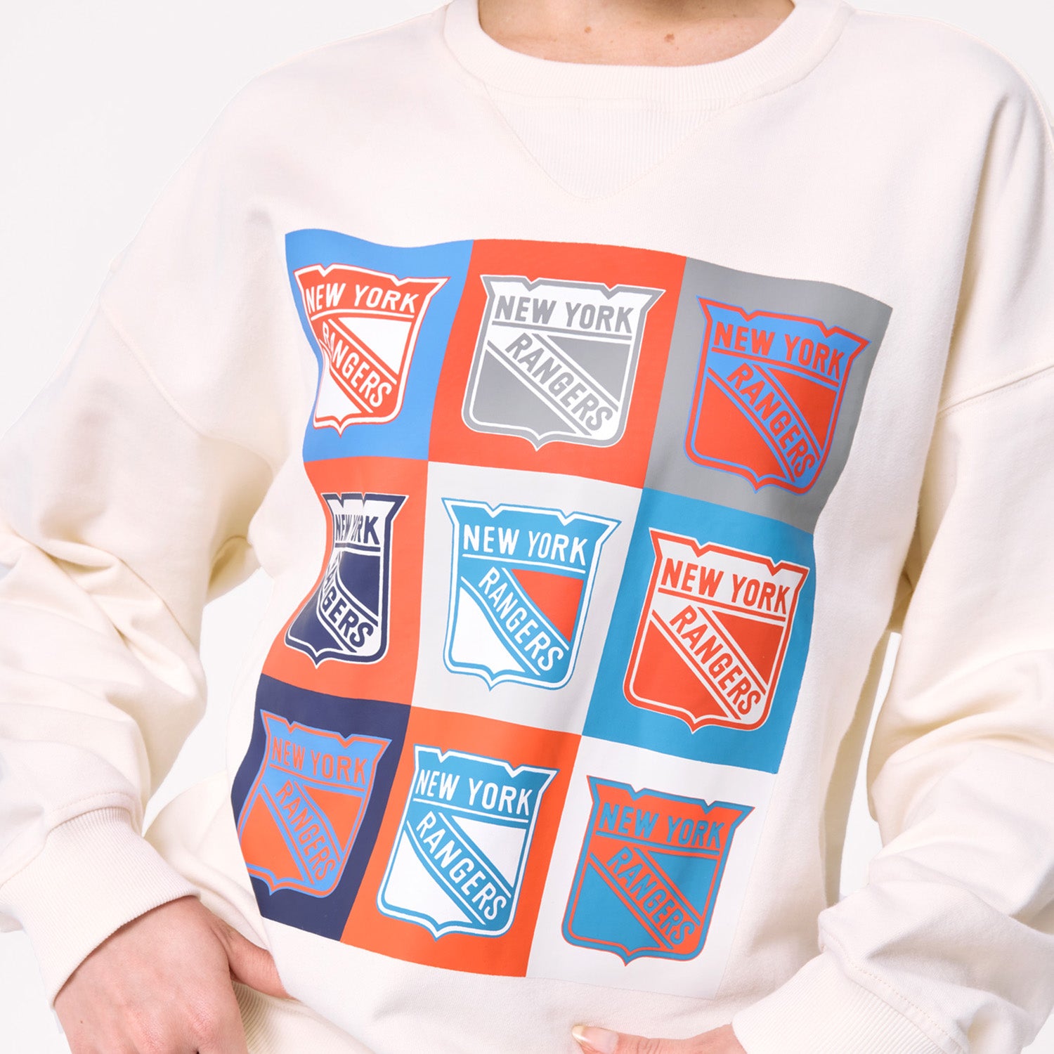 Terez Rangers Women's Cream Neon Logos Technicolor Crew