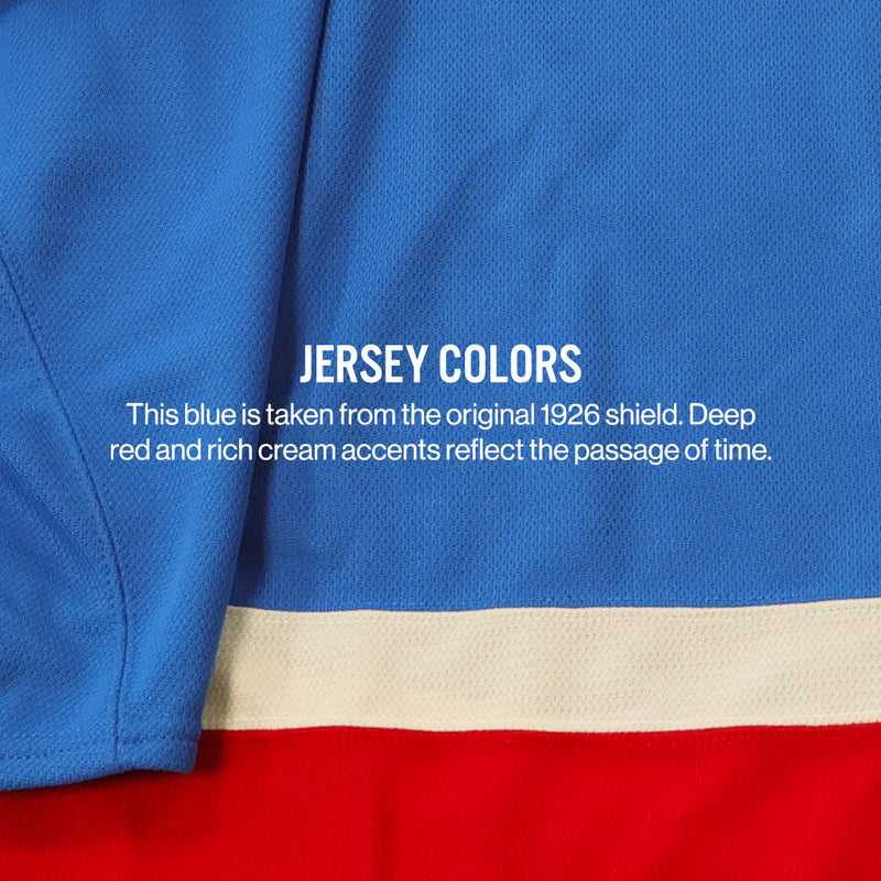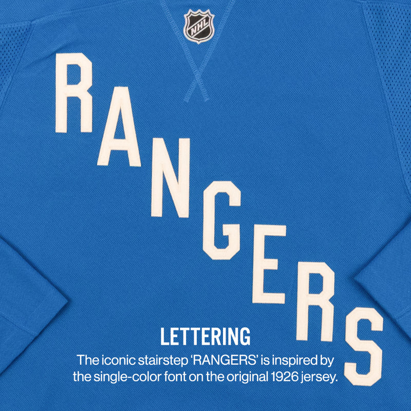Over the course of a century, the Rangers jersey has undergone several alterations, but the original spirit has endured. In honor of the franchise's Centennial season, the Rangers organization pays tribute to the original Blueshirt with its Centennial jersey, which will be worn on select occasions in 2025-26. The base color and lettering are modeled off the sweater the Rangers wore in their inaugural season, demonstrating how the team's uniform has become a timeless classic.